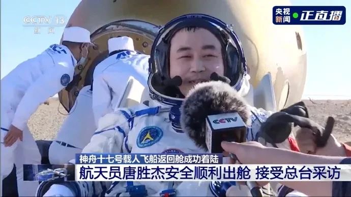 北京時間2024年4月30日17時46分,神舟十七號載人飛船返回艙在東風著陸場成功著陸,現(xiàn)場醫(yī)監(jiān)醫(yī)保人員確認航天員湯洪波、唐勝杰、江新林身體狀態(tài)良好,神舟十七號載人飛行任務取得圓滿成功。