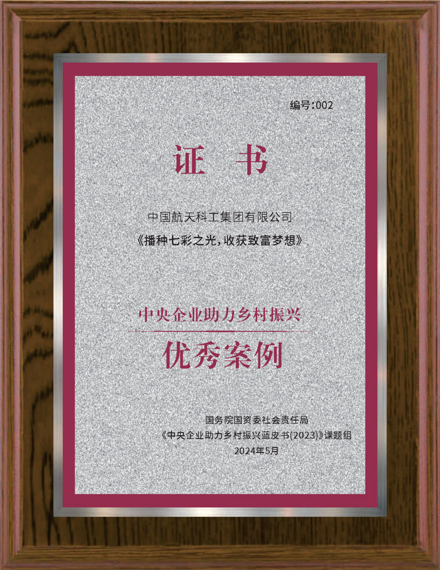 近日,國務院國資委舉辦中央企業助力鄉村振興經驗交流會,會上發布了《中央企業助力鄉村振興藍皮書(2023)》,頒發了2023年度中央企業助力鄉村振興優秀案例和示范項目證書,中國航天科工《播種七彩之光 收獲致富夢想》成功入選22個產業振興優秀案例之一,并納入《中央企業助力鄉村振興藍皮書(2023)》。這是國務院國資委第二次開展中央企業助力鄉村振興優秀案例和示范項目評選,繼去年《航天技術化身森林衛士防災減災守護綠水青山》首次成功入選示范項目后,今年航天科工再次獲評優秀案例。