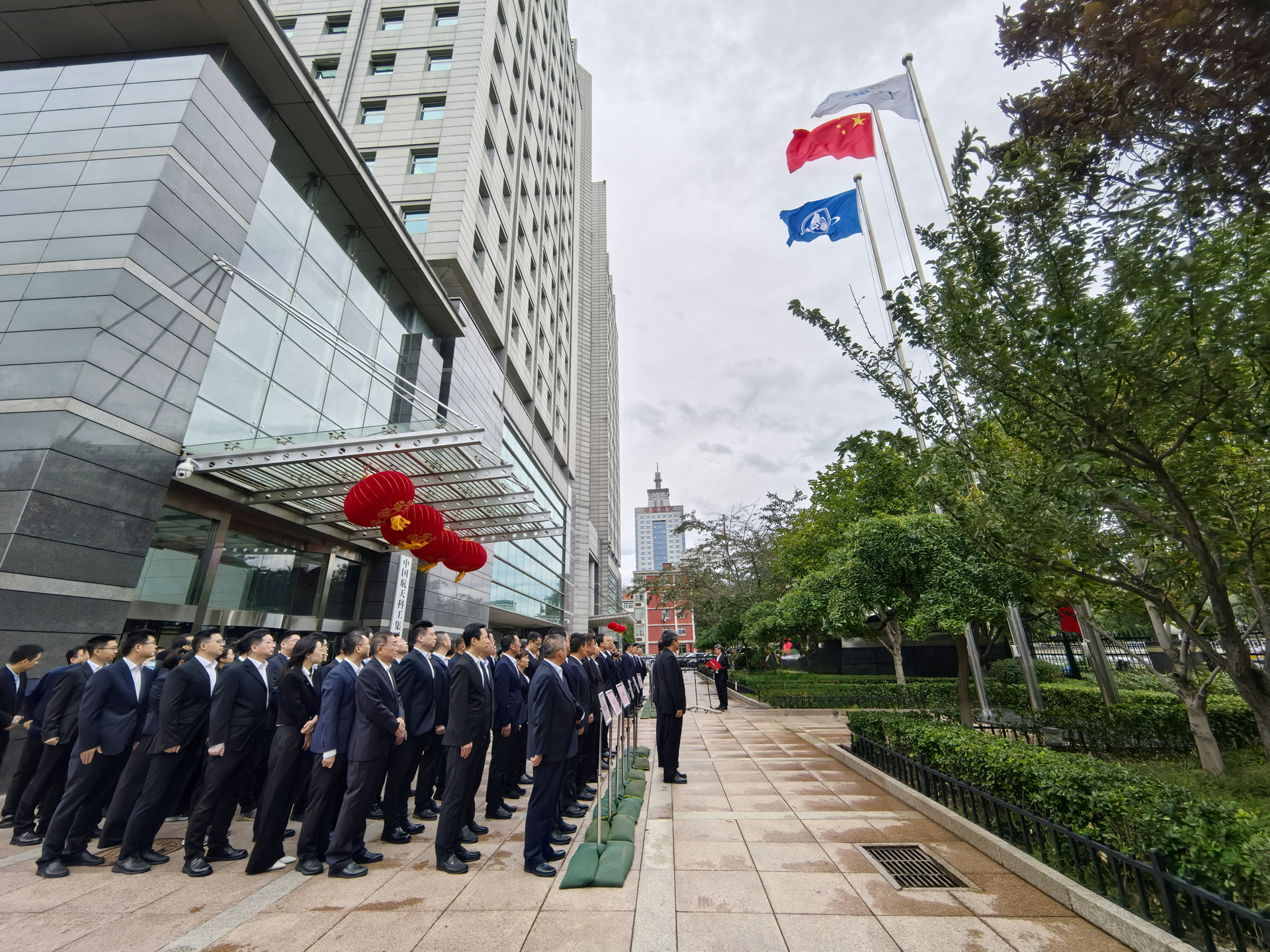 集團公司黨組書記、董事長陳錫明,黨組副書記、總經理龔波等全體在家黨組領導,集團公司高級管理人員、總部各部門(機構)主要負責人及員工參加升旗儀式。龔波主持升旗儀式。