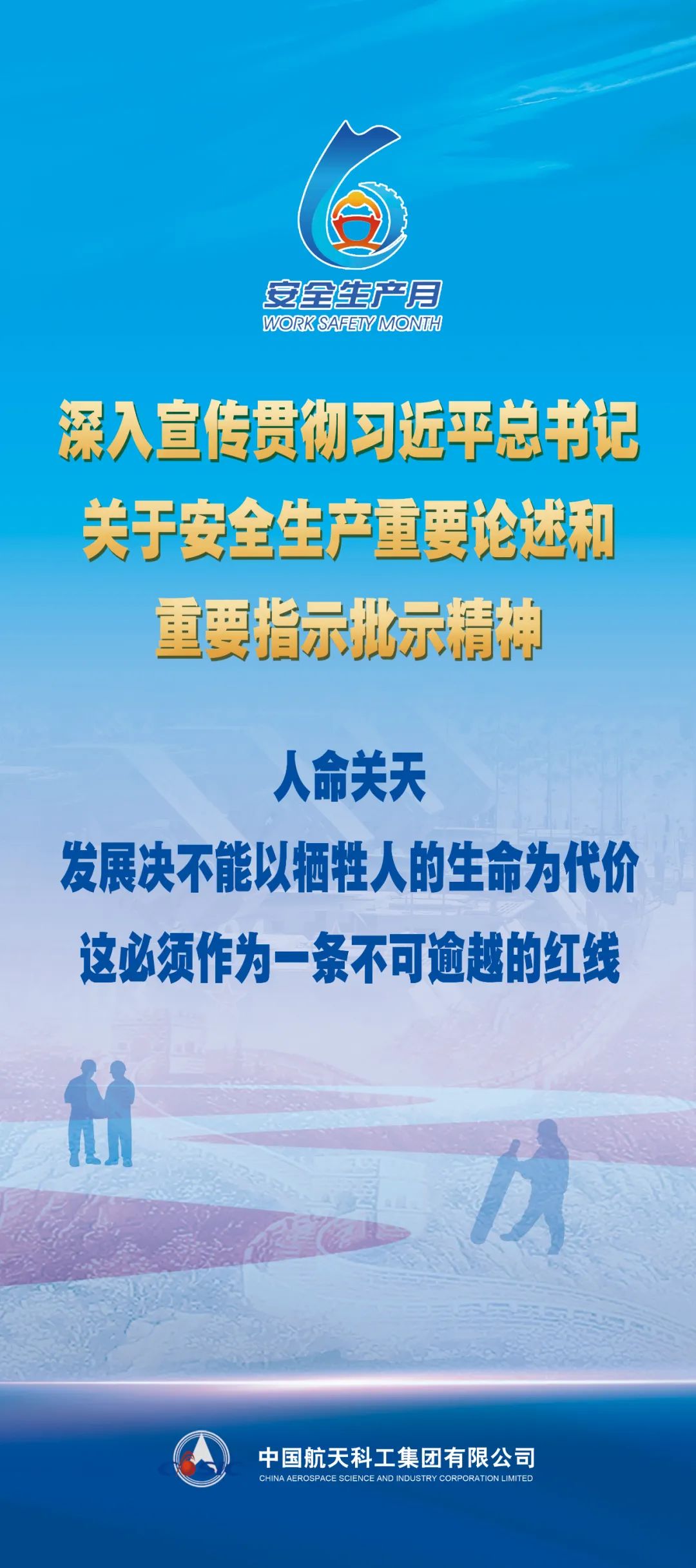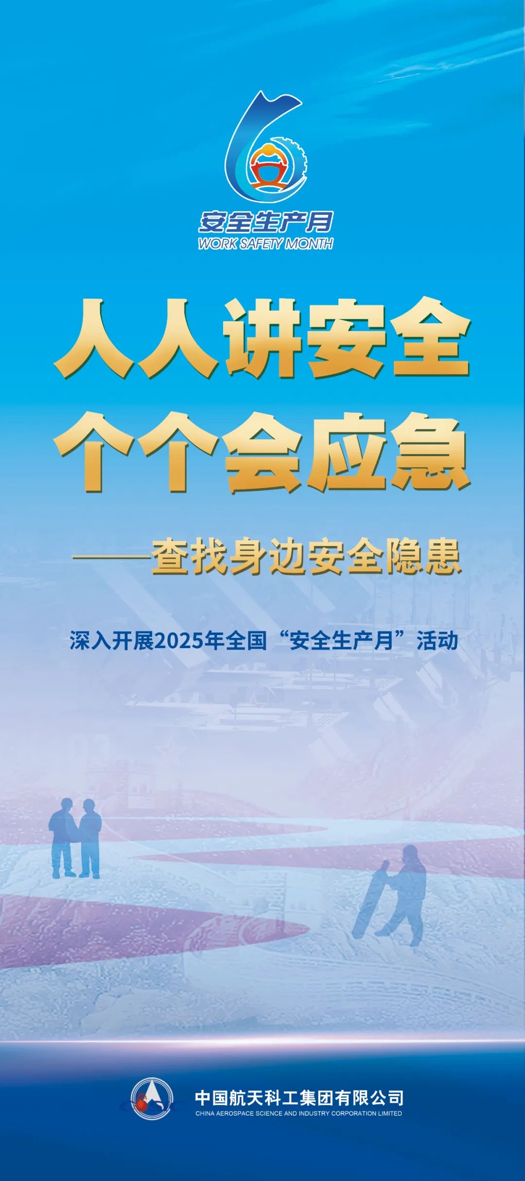 今年6月是第24個全國“安全生產月”,主題為“人人講安全、個個會應急——查找身邊安全隱患”,6月16日為全國“安全宣傳咨詢日”。近日,中國航天科工集團有限公司印發通知,對在全系統開展好2025年全國“安全生產月”活動作出安排部署。