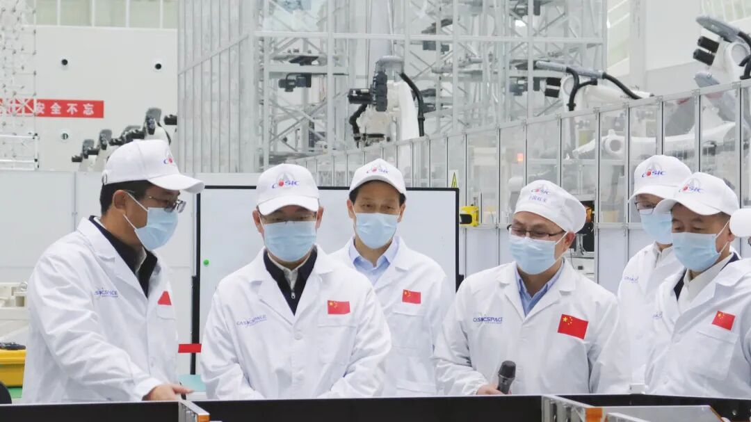 陳錫明一行現場調研了衛星智能生產能力和在軌運行管理能力,聽取了空間工程總體部整體發展情況、在研任務進展和“十五五”規劃匯報。