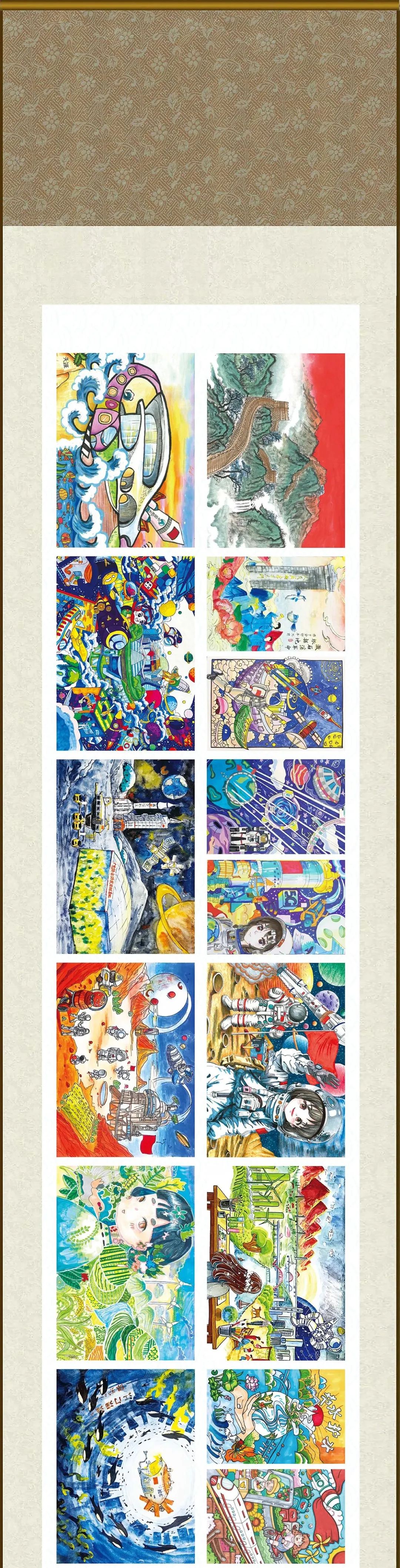據介紹,本屆畫展主要有三大亮點:一是主題鮮明,緊緊圍繞“孩子眼中的中國式現代化”,堅持思想性、藝術性和創新性相統一,承載新時代青少年強國夢想的長卷在“天宮”徐徐展開,給人以強烈的精神感染和視覺沖擊;二是覆蓋面廣,作品出自31個省(自治區、直轄市),以及香港、澳門特別行政區的青少年之手,彰顯全國各族人民對實現中國式現代化的共同期盼;三是文化味濃,畫卷用絲綢制作并于新春佳節之際在中國空間站展出,充分展現出現代科技與傳統文化的融合之美,使畫展更具中國特色、富有文化韻味。