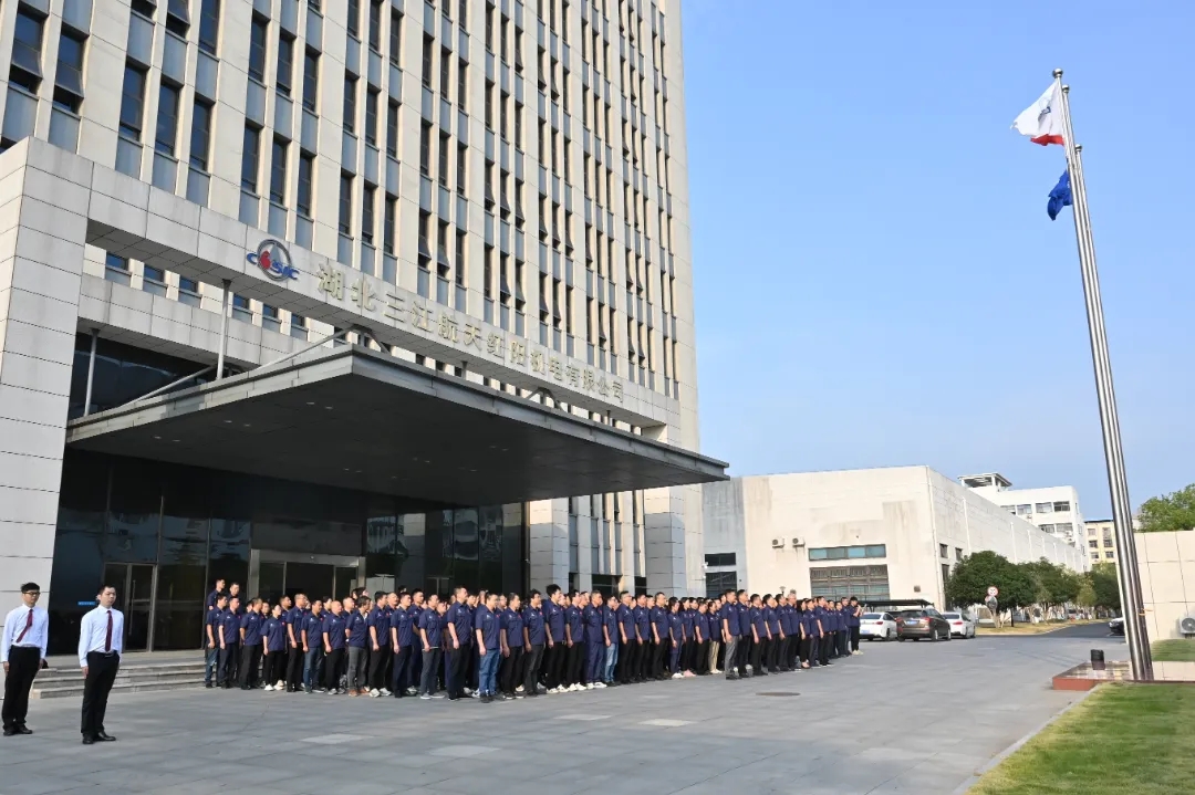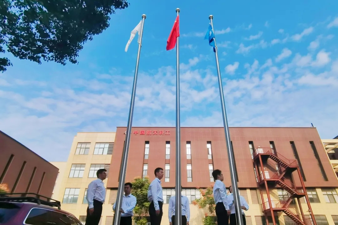 伴隨著國歌的雄壯旋律,鮮艷的五星紅旗冉冉升起,參加升旗儀式的干部職工面向國旗行注目禮、高唱國歌,送出對祖國母親的深深祝福。在集團(tuán)公司司歌聲中,司旗迎風(fēng)飄揚(yáng),大家以昂揚(yáng)的斗志,表達(dá)對航天事業(yè)的熾熱情懷。