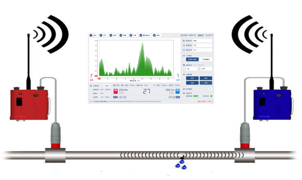 水聽器相關儀專注解決帶壓管線漏點精準定位難題,為城市供水管網與熱力管網檢測帶來革命性突破,憑借獨特的水聽器模式,檢測距離可長達1.2公里,遙遙領先同類產品,精準定位微小泄漏點,讓隱患無處遁形。該產品操作便捷高效,從安裝到檢測僅需三分鐘,無需依賴專業人員經驗。設備體型小巧便攜,功能高度集成,涵蓋傳統相關儀、聽漏棒和電子放大聽漏儀功能。該產品將有力推動城市管網檢測智能化進程,大幅提升檢測效率與精度,降低運維成本,為保障城市生命線安全穩定運行奠定堅實基礎。