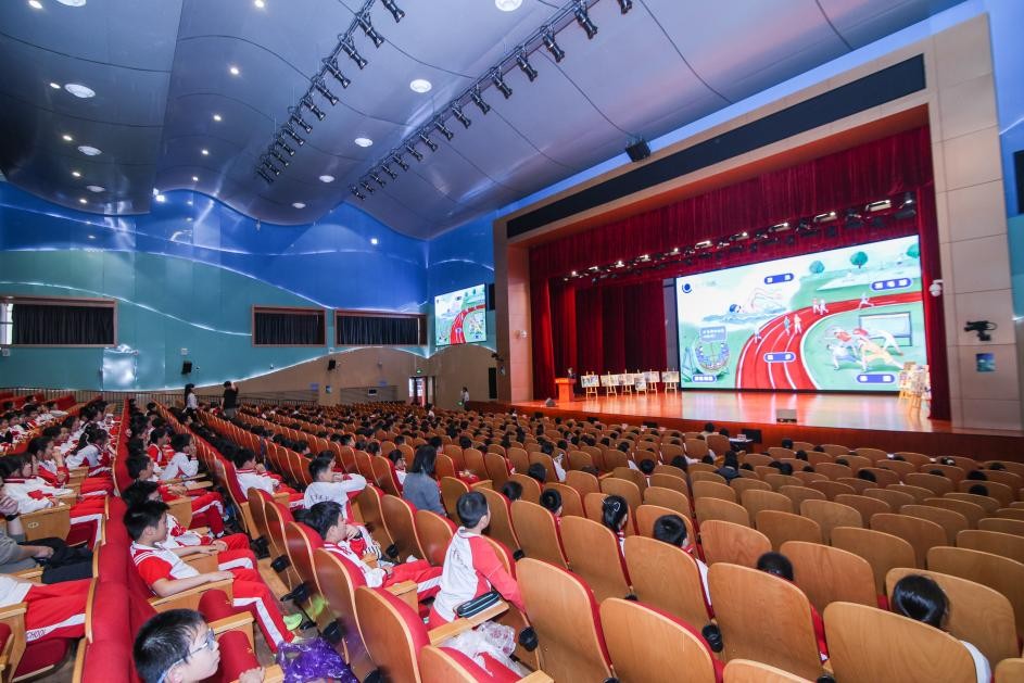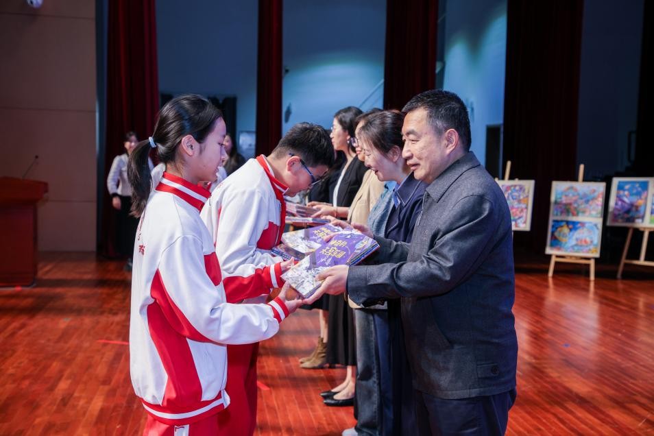 隨后,吳杰、沈立鳳與中國航天科工二院208所二級專務李曉紅共同觸摸啟動球,主視覺大屏同步呈現繪本封面與天宮建成了主題字,標志著這套入選十四五國家重點出版物出版規劃項目的科普繪本正式發布。緊接著的贈書儀式上,與會嘉賓將繪本贈予學生,為育英校園播撒下航天夢想的種子。