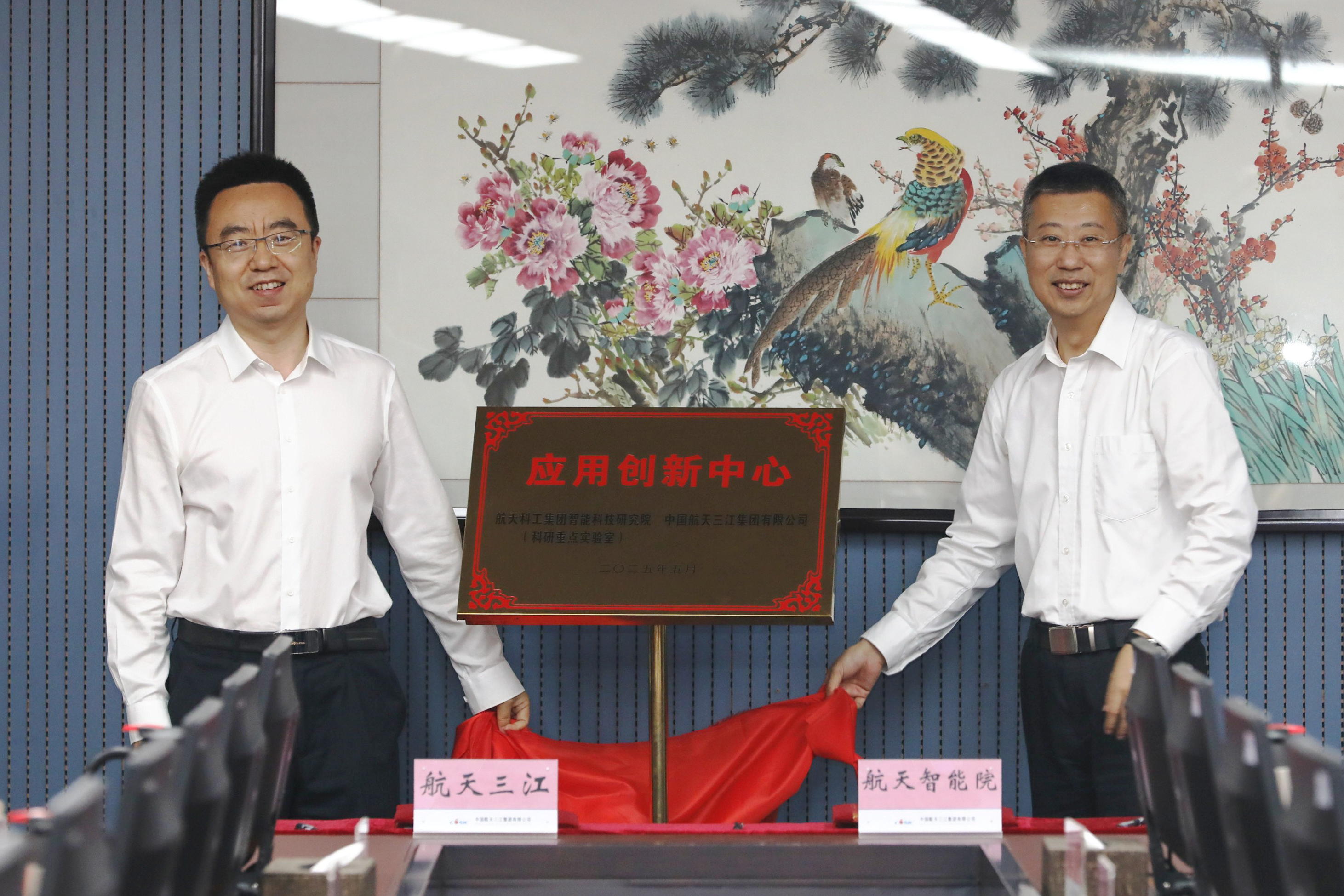 58航天智能院與航天三江在武漢簽署共建智能技術應用創新中心戰略合作協議。航天科工九院黨委副書記總經理劉博,航天智能院黨委書記、總經理、常務副院長趙軍代表雙方簽署協議,并為智能技術應用創新中心揭牌