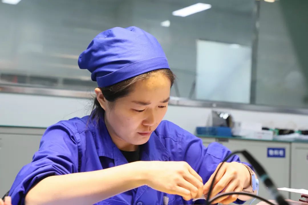 作為電裝中心的“王牌導師”,小徐憑借精湛技藝和耐心教導,培養(yǎng)出一批批骨干。她不僅以身作則,以專注嚴謹?shù)膽B(tài)度投入工作,更會在徒弟們疲憊時暖心鼓勁:“加把勁,我們一定能完成。”在這樣團結(jié)奮進的氛圍中,大家爭分奪秒、你追我趕,全力推動生產(chǎn)進度。