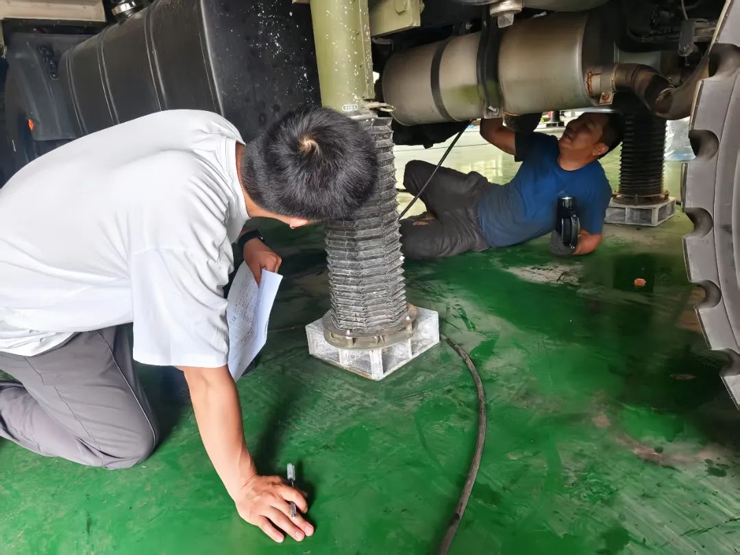 近日,為確保一項目維保工作按標(biāo)準(zhǔn)推進、按時完成,微電院設(shè)計師駐守現(xiàn)場。走進車間,設(shè)計師細(xì)致核查外協(xié)操作步驟,全程把控維保質(zhì)量,有序推進各項工作。圖為設(shè)計師與外協(xié)人員對底盤進行維保工作。(圖文/張文杰)