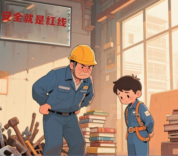 錢師傅的嗓門穿透廠房。當看到新來的徒弟小員為圖方便不系安全帶就要上梯子,眼疾手快的錢師傅一下就把他“拎”回安全區,罰抄《安全操作手冊》三遍。在學習中,安全教育培訓視頻里高處墜落事故的場景,讓小員驚出一身冷汗。他很快就懂了錢師傅的苦心,也理解了那些反復叮囑背后的深意。