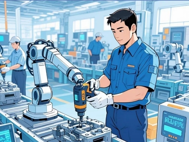 曾經,裝配大型產品需要眾多人力長時間輪流作業,勞動強度極大。如今,智能機械臂投入使用,不僅輕松托舉產品,還能實時傳輸相關數據,裝配時間大幅縮短。班長鄭師傅調侃:“以前干完活胳膊抖三天,現在下班還能跟訓練短跑的兒子賽跑呢!”