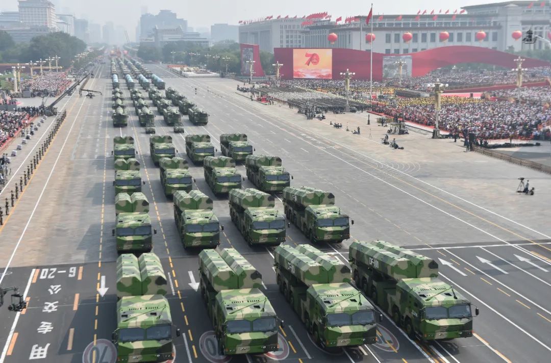 大國長劍,浩蕩東風。作為受閱裝備方隊的壓軸巨陣,由7個型號導彈方隊組成的戰略打擊模塊成為此次閱兵式的焦點。其中,東風21D導彈是打擊艦船目標的陸基彈道導彈,懾控范圍廣、攻擊速度快、突防能力強,是我軍海上非對稱作戰的“殺手锏”武器;長劍10A巡航導彈具備隱身突防、復合制導、連續攻擊能力,命中精度高、殺傷威力大,是我軍精打要害、克敵制勝的主戰裝備……這些導彈武器裝備為國家的領土、領空、領海筑起堅固的鋼鐵長城,不僅保障著中國的大國地位,也直接決定著我國能否擔負起建設持久和平、共同繁榮的和諧世界的使命。