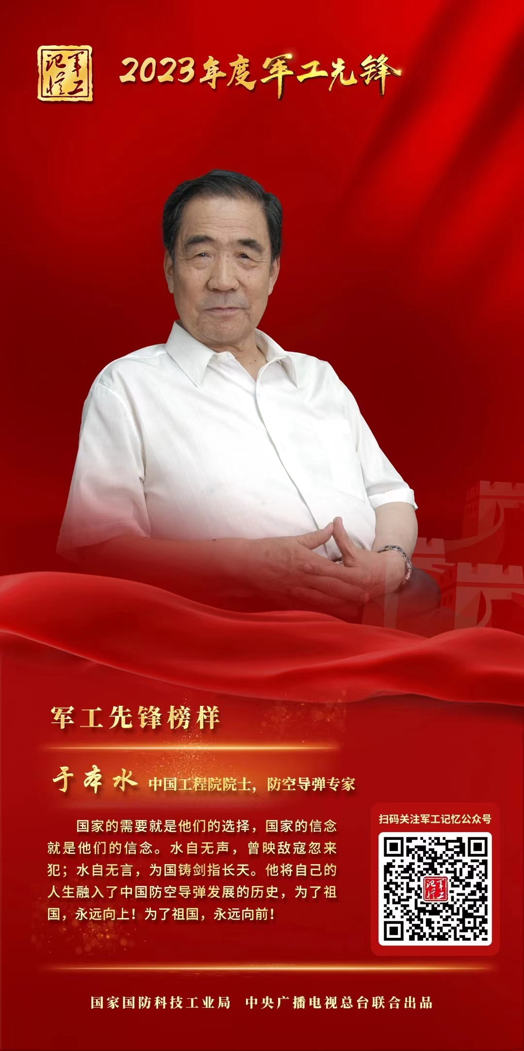 2023年12月28日晚,由中央廣播電視總臺(tái)軍事節(jié)目中心和國(guó)家國(guó)防科技工業(yè)局新聞宣傳中心聯(lián)合打造的年度重點(diǎn)特別節(jié)目《軍工先鋒》在CCTV-7國(guó)防軍事頻道播出。我國(guó)著名防空導(dǎo)彈專(zhuān)家于本水院士當(dāng)選2023年度“軍工先鋒榜樣”。