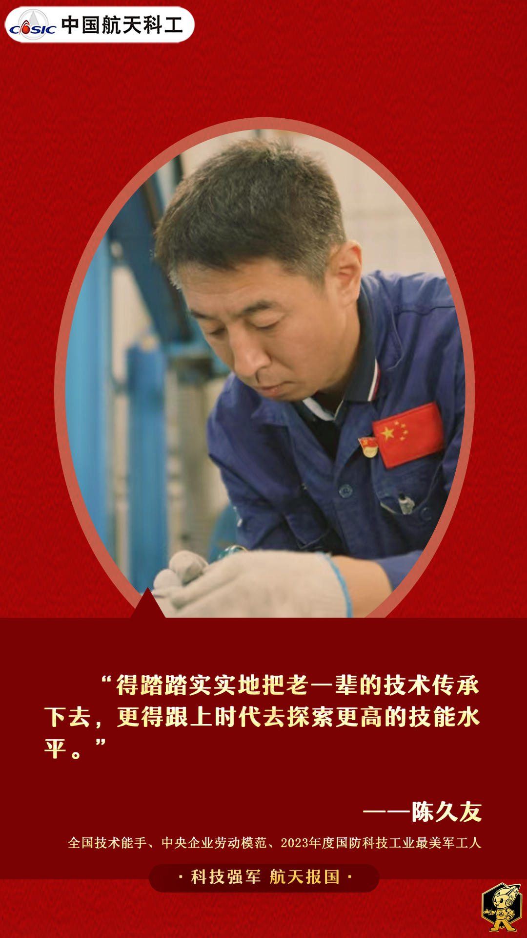 面對“凹陷一毫米,損失上百萬”的巨大挑戰,陳久友回答:“沒問題!”看似輕松,實則是藝高人膽大。“膽”從何處來?從24年的磨礪中來,從對“急難險重”的處置經驗中來,從對航天事業的熱愛中來。我們要學陳久友,把困難挑戰當財富。迎難而上,必有所得!