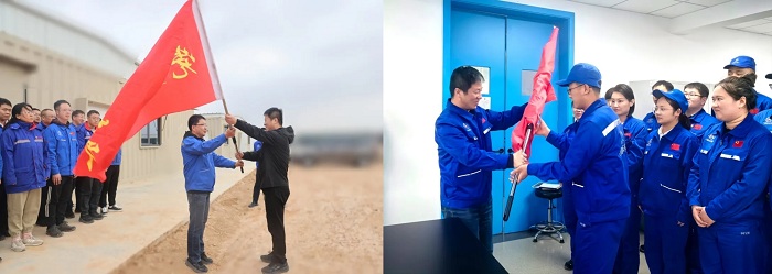 授旗儀式上,所領導為黨員突擊隊代表、青年突擊隊代表授旗。突擊隊隊長介紹隊名、人員組成和任務目標。