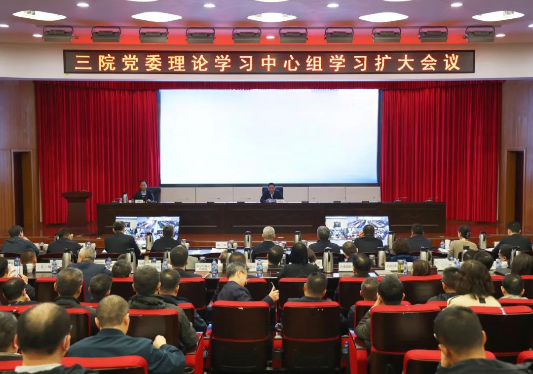 三院全體在家院領導、本部各部門負責人,院屬單位領導班子成員,部分單位相關部門負責人等300余人在主會場和視頻分會場參加學習。三院黨委書記施毅主持學習會。