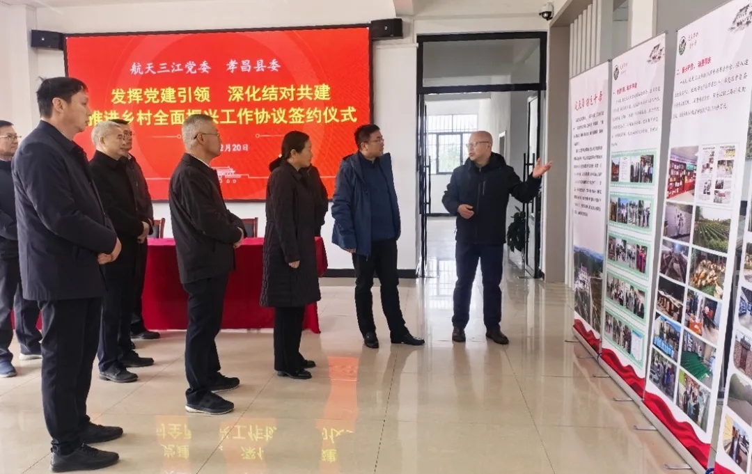 在航天科工九院定點幫扶孝昌縣小河鎮仙雨砦村十周年之際,12月20日,航天科工九院黨委書記、董事長高輝文一行深入駐點村,就發揮黨建引領、深化結對共建,推進鄉村全面振興工作開展調研,并與孝昌縣委簽署《結對共建協議》。這標志著雙方在成功實踐基礎上,開啟了新一輪為期5年的深度結對共建合作,共同繪制企地融合、振興鄉村的新藍圖。孝昌縣委書記等有關方面領導參加調研。