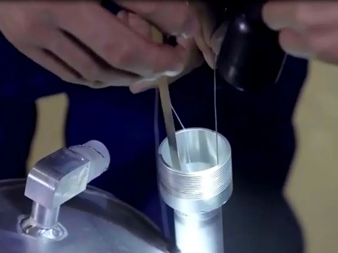 絕不能讓油標再掉下去!李軍急中生智,讓同事用0.8毫米的鉛封絲、蠟綁線拴了一個活扣,一只手拿著U型的細鐵絲順下去,再繞過油標提起、捆住、拽緊,再將自制工具和油標慢慢分開。