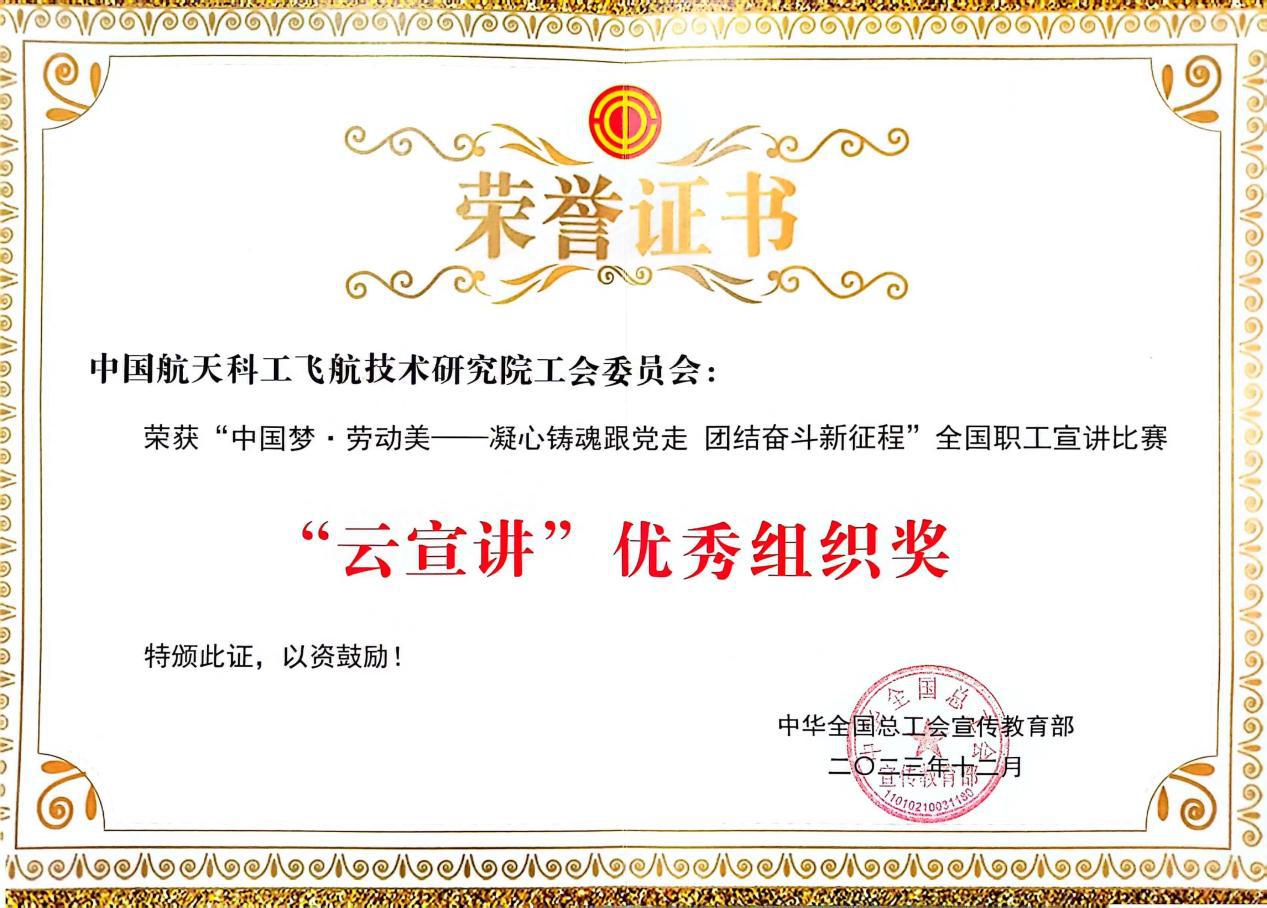 近日,全國總工會宣傳教育部下發(fā)《關(guān)于“中國夢·勞動美——凝心鑄魂跟黨走 團(tuán)結(jié)奮斗新征程”全國職工宣講比賽“云宣講”獲獎情況的通報》,中國航天科工三院工會獲得優(yōu)秀組織單位,也是航天系統(tǒng)唯一獲此殊榮的單位。此次評選,共有15家地市級工會及15家機(jī)關(guān)企事業(yè)單位獲獎。