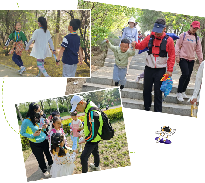 會桃花之芳園,序天倫之樂事,親子定向越野挑戰賽是二院職工親子活動的傳統項目,今年的挑戰賽邀請了玉泉小學教職工子女及學生共同參與,1800余名小朋友們在家長的陪同中拿著“任務卡”四處奔波,完成打卡挑戰,贏取航天小勇士獎牌。