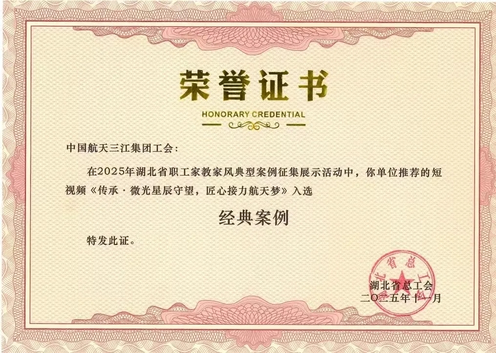 近期,2025年湖北省職工家教家風典型案例發布暨展示活動在武漢舉行,航天科工九院選送的短視頻《傳承?微光星辰守望,匠心接力航天夢》從1200余件作品中脫穎而出,獲評經典案例。