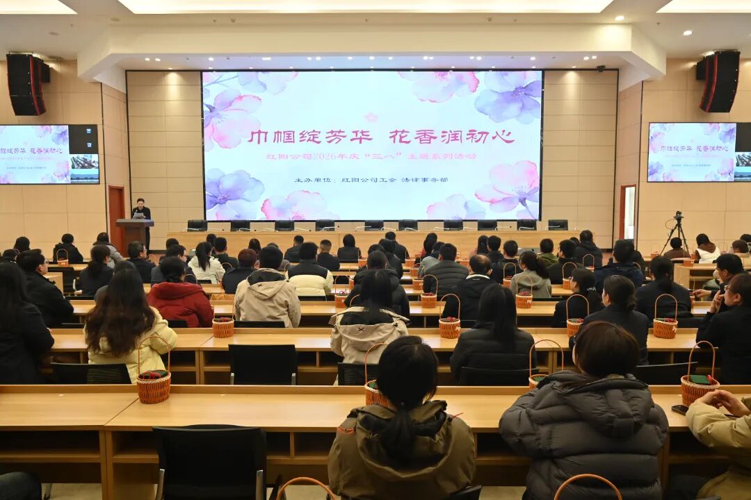 紅陽公司以“巾幗綻芳華花香潤初心”為主題,開展先進表彰、普法問答、創意插花等活動,讓廣大女職工在輕松互動中學習法律知識、感受花藝樂趣。(圖文/胡卓立)